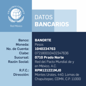 Al realizar el pago*, recuerda compartir el comprobante de depósito y respectiva constancia de situación fiscal para la emisión del CFDI correspondiente al correo: aportaciones@pactoglobal.org.mx